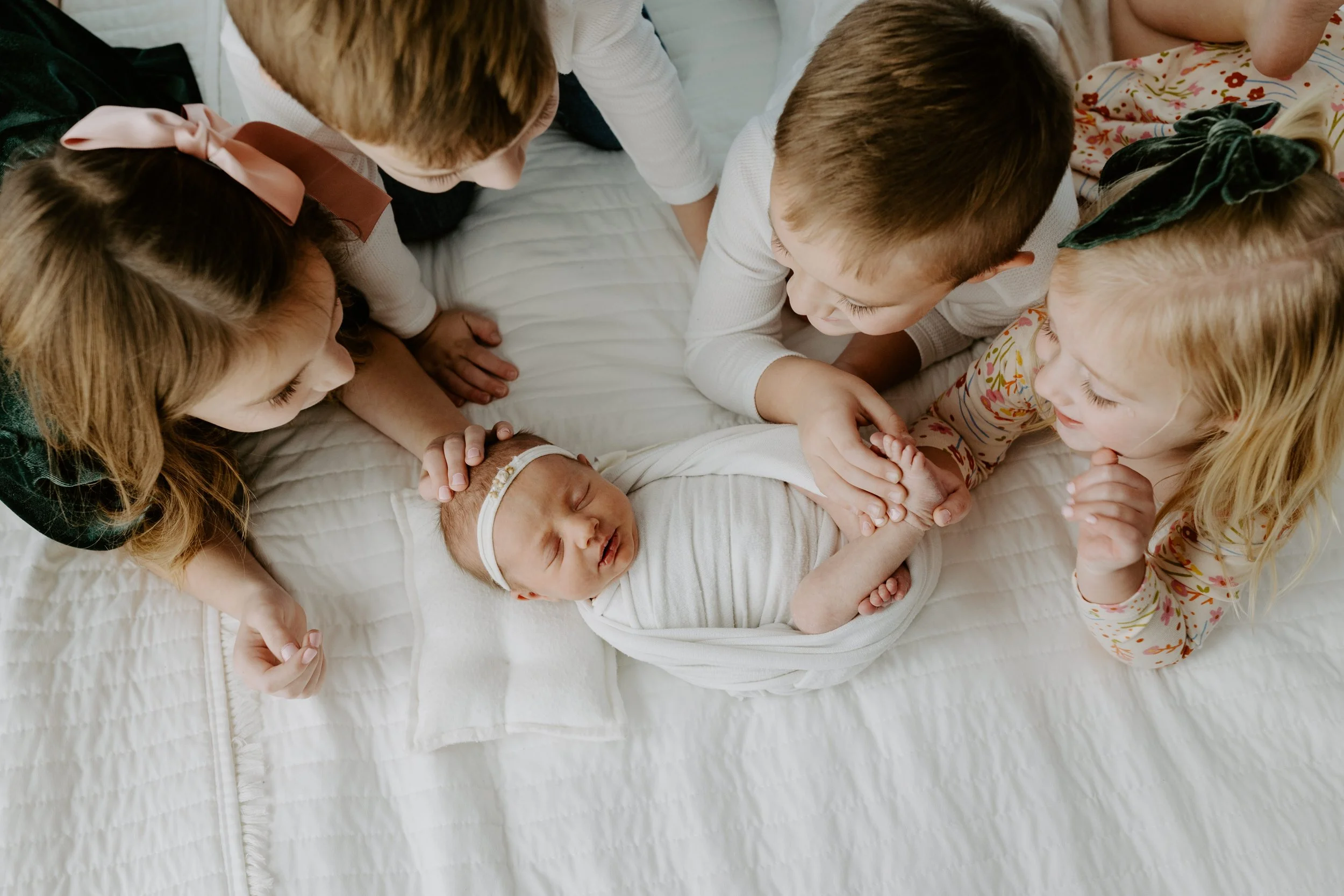 Newborn sessions are temporarily booked for your due date and then moved once baby is earth-side. All newborn sessions take place in the morning or early afternoons while we have the best light in the studio. We also offer in-home lifestyle newborn sessions which are much less posed than a studio session. (Travel fees may apply.) As our calendar does tend to fill up quickly, we recommend booking your session while you are in your second trimester.